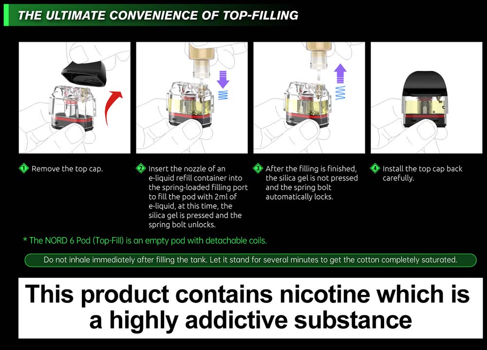 DİKKAT! KARTUŞLARI LİKİT İLE DOLDURDUKTAN SONRA KARTUŞ İÇERİSİNDEKİ SERAMİK/PAMUK MALZEMELERİNİN LİKİTİ TAM EMMESİ İÇİN MİNİMUM 20 DAKİKA BEKLEYİN. BU BEKLEME ESNASINDA KARTUŞUNUZUN YANMAMASI İÇİN CİHAZI KULLANMAYA ÇALIŞMAYIN.